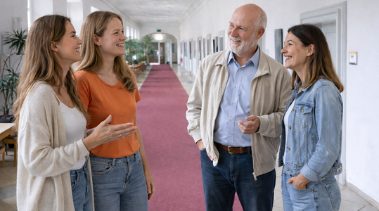 Besuchen Sie uns einen Tag ganz unverbindlich in der Akademie für Gesundheitsberufe. Wir haben dafür spezielle Tage ausgewählt. An diesen informieren wir Sie über alle relevanten Dinge rund um das Berufsfeld der Logopädie und unserer dreijährige Ausbildung. Wir nehmen uns Zeit für Ihre Fragen, zeigen Ihnen die Schule, unsere Therapieräume und das schöne Kloster Wiblingen.